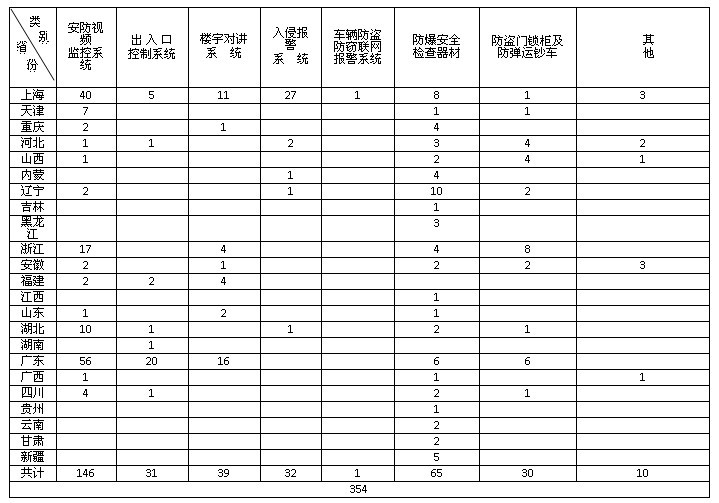 一、個省、自治區(qū)、直轄市獲得生產(chǎn)登記批準(zhǔn)書的安防產(chǎn)品生產(chǎn)企業(yè)數(shù)量(354共家):