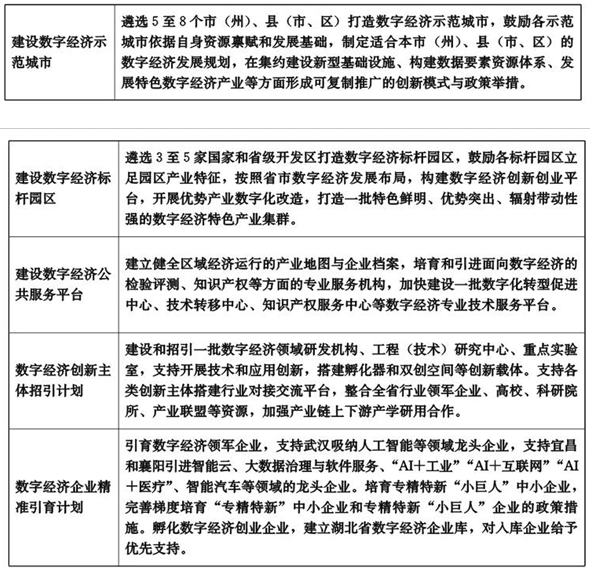 根据《规划》,湖北省数字经济将推进九大主要任务,包括超前部署互联互通信息基础设施、积极建设聚通用管数据资源体系、着力锻造核心数字技术创新链条、培育世界级光芯屏端网产业集群、促进制造业数字化转型升级、发展特色高效现代智慧农业、创新发展服务业新业态模式、推进新时代城乡高效能治理、全面优化数字经济发展环境等。