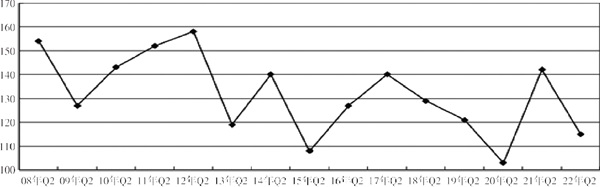 一季度安防企业盈利景气指数为122,位于"较景气区间"(见图8),与上季度相比下降了12个百分点,与去年同期相比下降了10个百分点。在调查对象中,有40%的企业反映"增盈(或减亏)",比去年同期下降了4个百分点;有42%的企业反映"持平",比去年同期下降了2个百分点;有18%的企业反映"盈利减少(或增亏)",比去年同期上升了6个百分点。